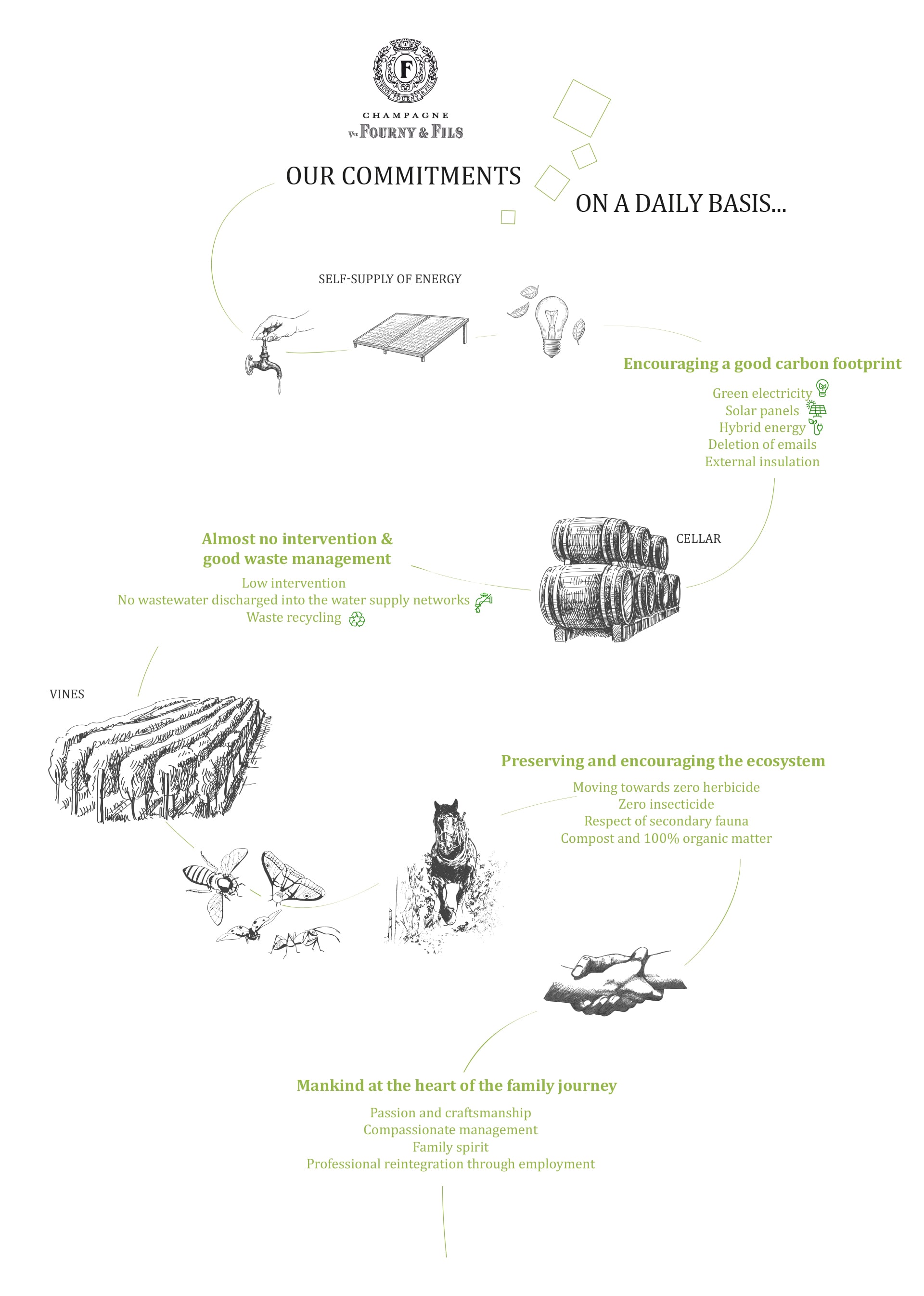The Veuve Fourny & Fils house has, for several years , been committed to an eco-responsible approach in its vineyard and throughout the process of developing and marketing its Champagnes.